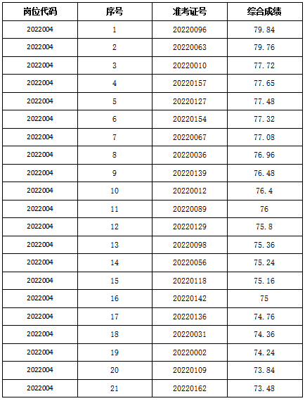 市三院2022年公開招聘第二批次崗位招聘人員綜合成績?nèi)缦拢?/p>