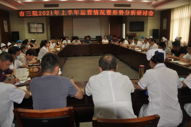 9月10日下午,市三院在綜合樓大會議室組織召開2021年上半年運營情況暨形勢分析研討會,總結(jié)上半年運營情況,分析存在的問題,明確下半年工作思路,為三院高質(zhì)量發(fā)展明確方向。會議由院長方堃主持,醫(yī)院領(lǐng)導(dǎo)班子、中層干部、醫(yī)護(hù)代表共計52人參加會議。